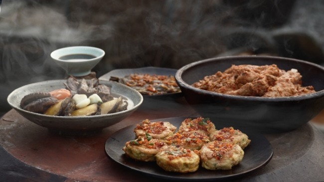굵은 멸치에 소금을 켜켜이 버무려 오래 삭히고, 그 젓국물을 뭉근히 달여낸 어간장은 짠맛은 차분해지고 풍미는 더욱 깊어진다. 그렇게 완성된 어간장은 ‘어간장굴미역국’에 들어가 진한 바다의 감칠맛을 더하고, 갓 잡은 생멸치를 조려낸 ‘어간장멸치조림’에는 만선의 기억과 가족의 고단한 삶을 함께 녹여낸다. 봄기운 머금은 ‘어간장머위무침’ 또한 어간장 하나로 맛을 완성한다. 여수의 바다와 고부의 손맛, 그리고 한시도 쉬지 않고 살아낸 바닷가 사람들의 시간이 어간장 한 방울 속에 고스란히 배어 있다.